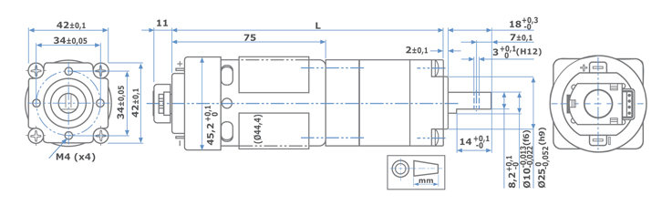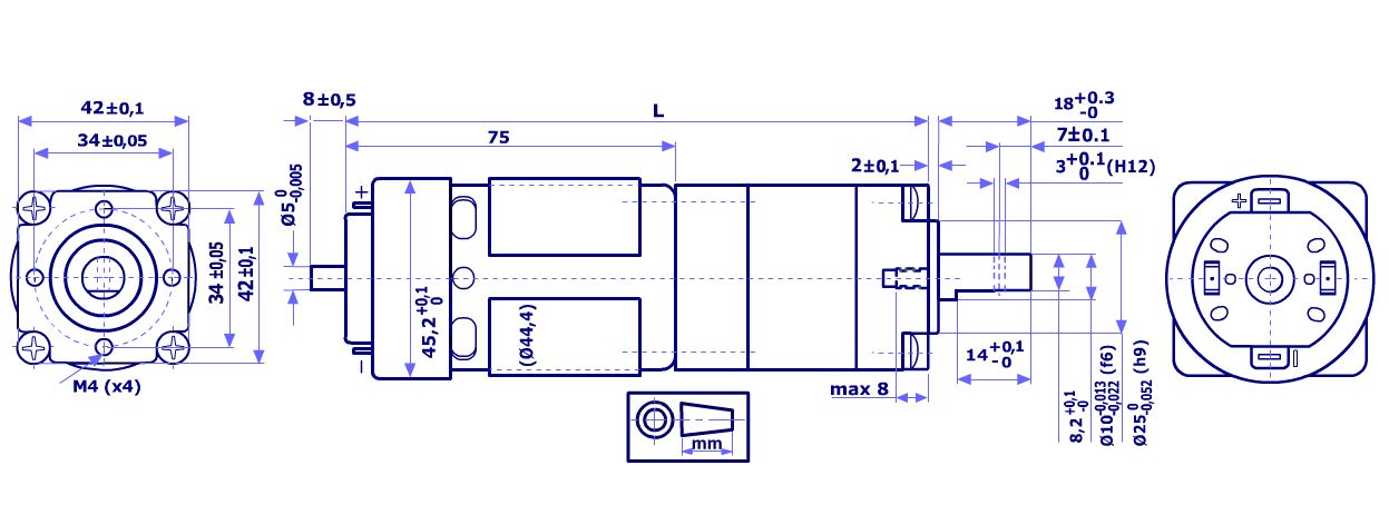 Încãrcare radialã maximã: 300N (10 mm de la flansa de fixare).