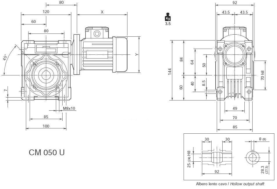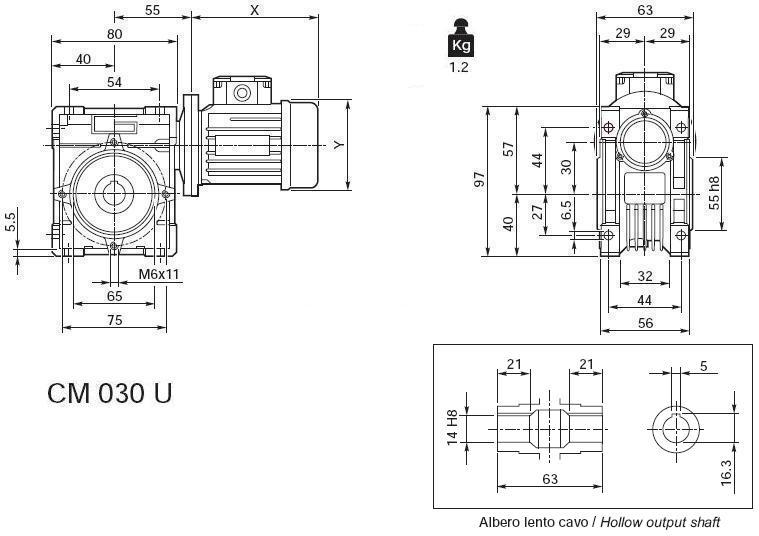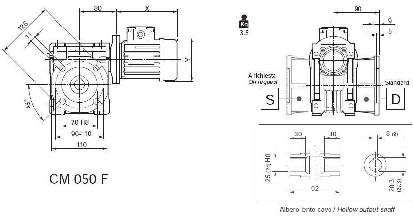 | 28 | 12 | 3,2 | 50 | CM040U / CM040F | B5/B14 |