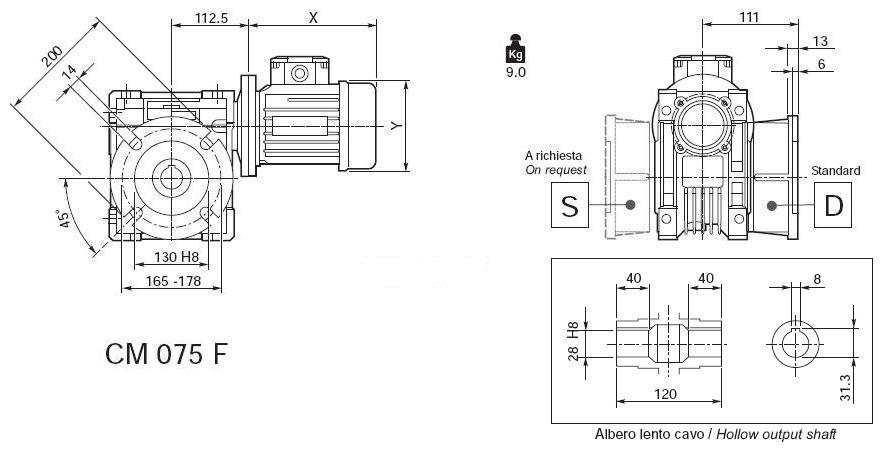 Mărimile 075, 090, 110 şi 130 sunt furnizate cu rulmenţi cu role conice pe melc.