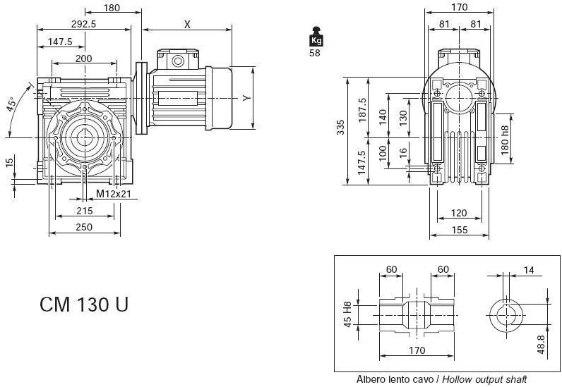 Toate dimensiunile sunt cu lubrifiant sintetic cu vâscozitate 320 cst, durată de viaţă lungă.