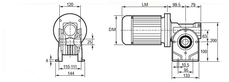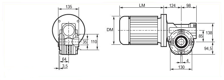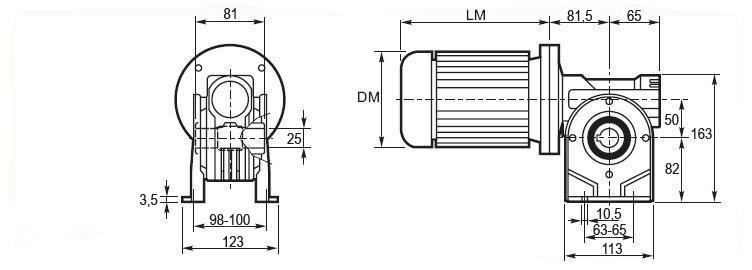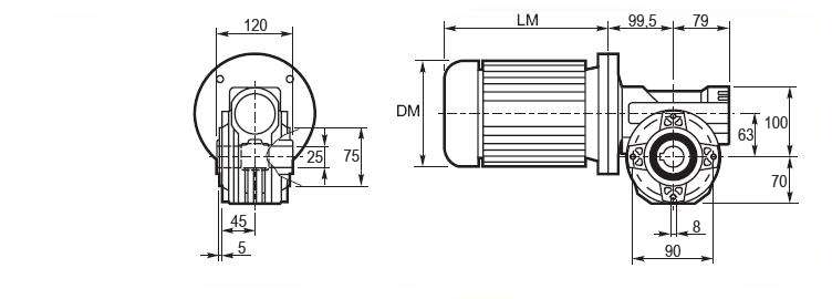 Mărimile 075, 090, 110 şi 130 sunt furnizate cu rulmenţi cu role conice pe melc.