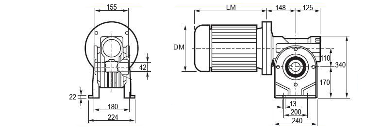 Toate dimensiunile sunt cu lubrifiant sintetic cu vâscozitate 320 cst, durată de viaţă lungă.