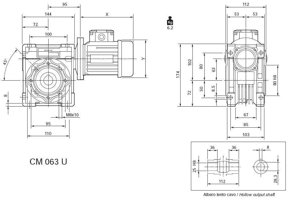 Toate dimensiunile sunt cu lubrifiant sintetic cu vâscozitate 320 cst, durată de viaţă lungă.