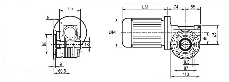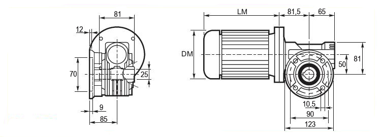 Mărimile 075, 090, 110 şi 130 sunt furnizate cu rulmenţi cu role conice pe melc.
